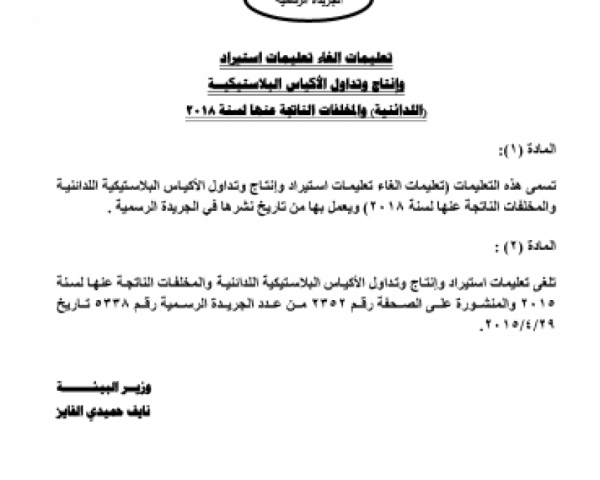 الحكومة تمنع انتاج واستراد الاكياس البلاستيكية