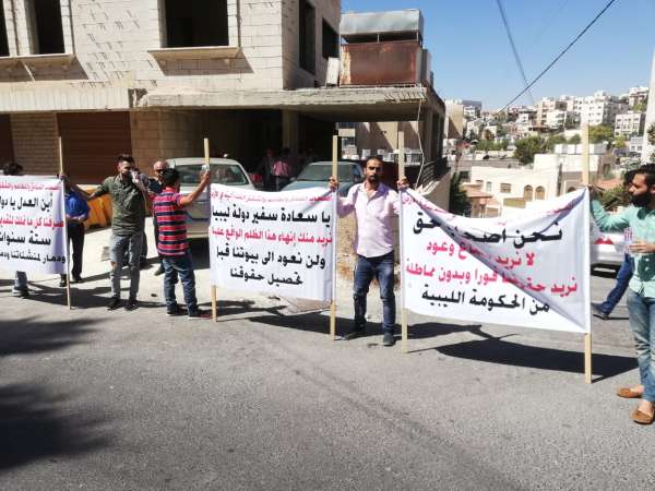اعتصام العشرات من مالكي الشقق امام السفارة الليبية للمطالبة بحقوقهم المالية