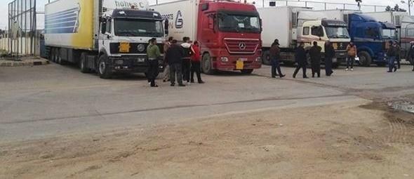 اعتصام لاصحاب الشاحنات على طريق المطار