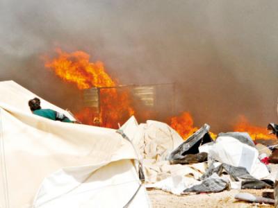 محتجون يحرقون خيما لعائلات سورية في بلدة المطلة !!!