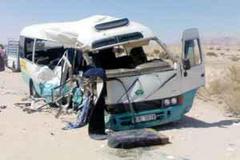 (10)اصابات بتصادم شاحنة(تريلا) و باص نقل ركاب بمنطقة نزول صافوط