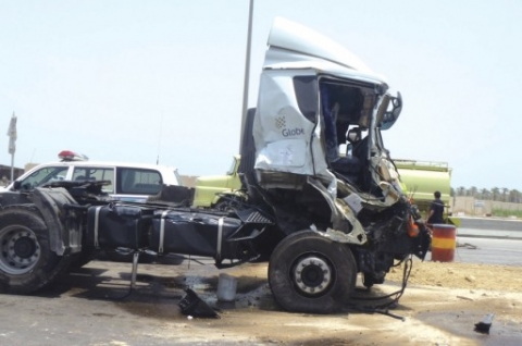 اصابتين بتصادم عنيف لشاحنتين بدير يوسف باربد