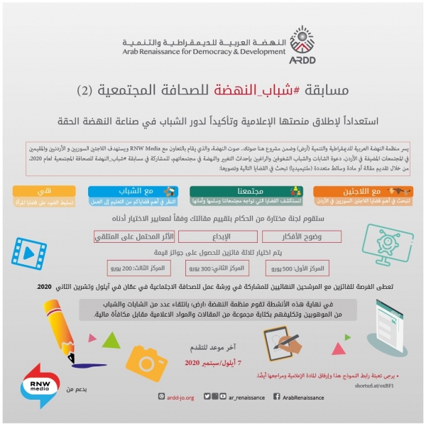 منظمة النهضة (أرض) تدعو الشباب والشابات للمشاركة في مسابقة #شباب_النهضة للصحافة المجتمعية