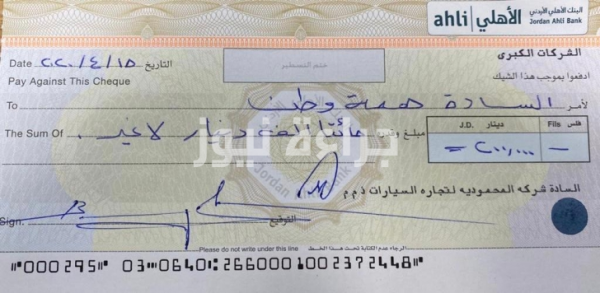 محمودية موتورز تتبرع بمبلغ 200,000 دينار أردني لصندوق "همة وطن"