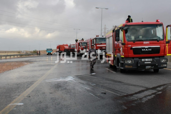 وفاة شخص اثر حادث تدهور صهريج و احتراقه في محافظة الزرقاء..صور