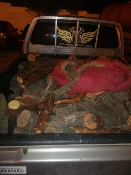 الادارة الملكية تضبط سيارة محملة بنصف طن سنديان في طريقها لعمان