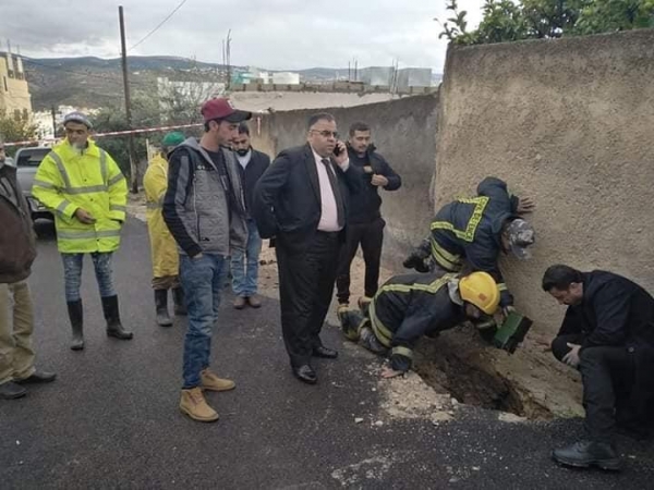 ظهور مغاره بشكل مفاجئ في وسط الشارع بمنطقة كفرابيل التابعه لبلدية برقش..صور