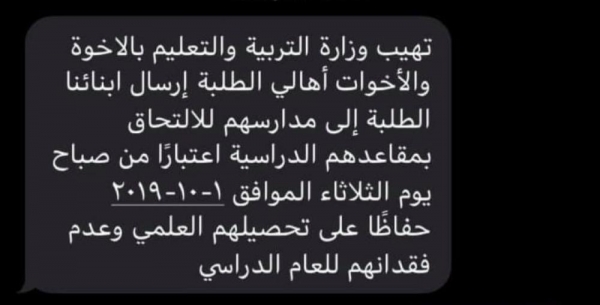 رسائل نصية من وزارة التربية لأولياء الأمور