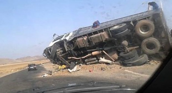 أنقلاب شاحنة على طريق الصفاوي الازرق واصابة شخصين