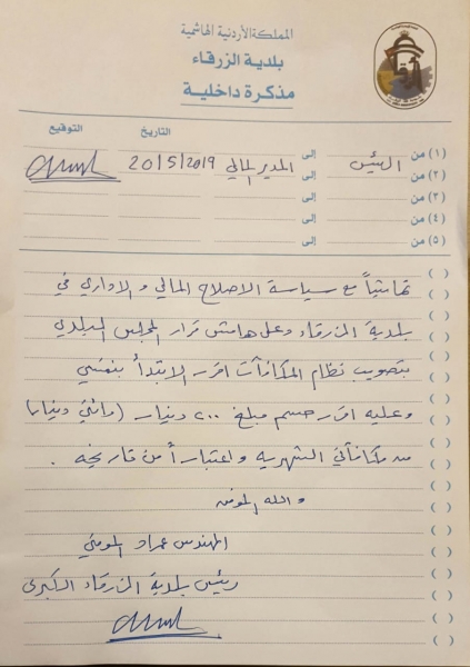 عماد المومني يحسم ٢٠٠ دينار من مرتبه لصالح صندوق بلدية الزرقاء