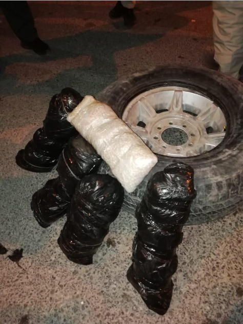 احباط تهريب 100 الف حبة كبتاجون داخل إطار مركبة