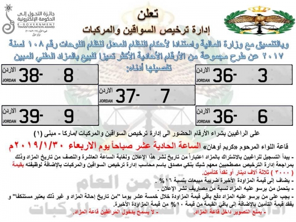 بالتفاصيل...الترخيص تطرح أرقام مركبات مميزة للبيع بالمزاد العلني
