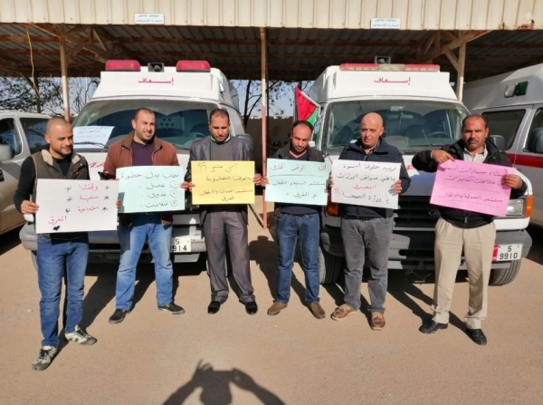 سائقو الاسعاف في مستشفى المفرق الحكومي ينفذون وقفة احتجاجية
