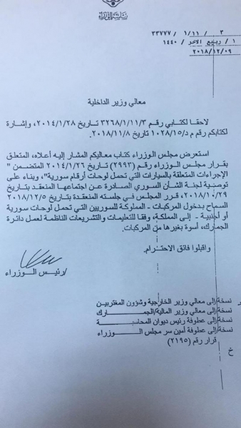 بالوثيقة..السماح للمركبات السورية دخول الاراضي الأردنية
