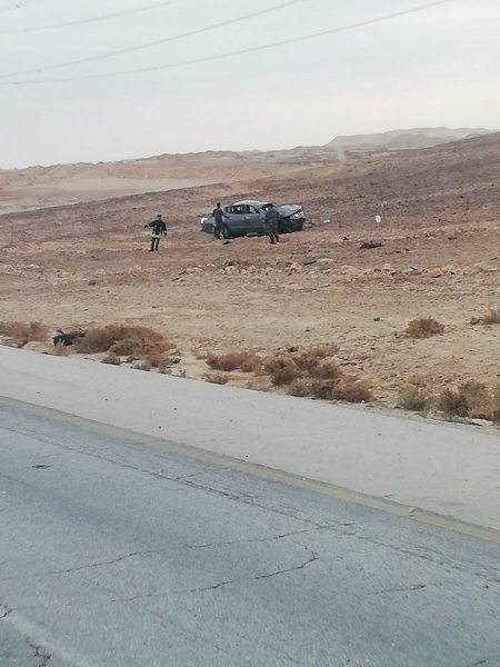 بالصور ..وفاة بحادث تدهور مركبة على الطريق الصحراوي