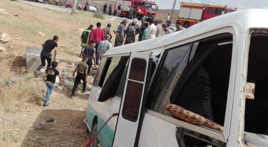 (23) إصابة إثر حادث تدهور باص عمومي في محافظة إربد