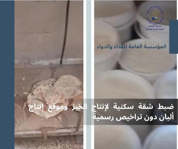 ضبط شقة سكنية لإنتاج الخبز وموقع إنتاج ألبان دون تراخيص