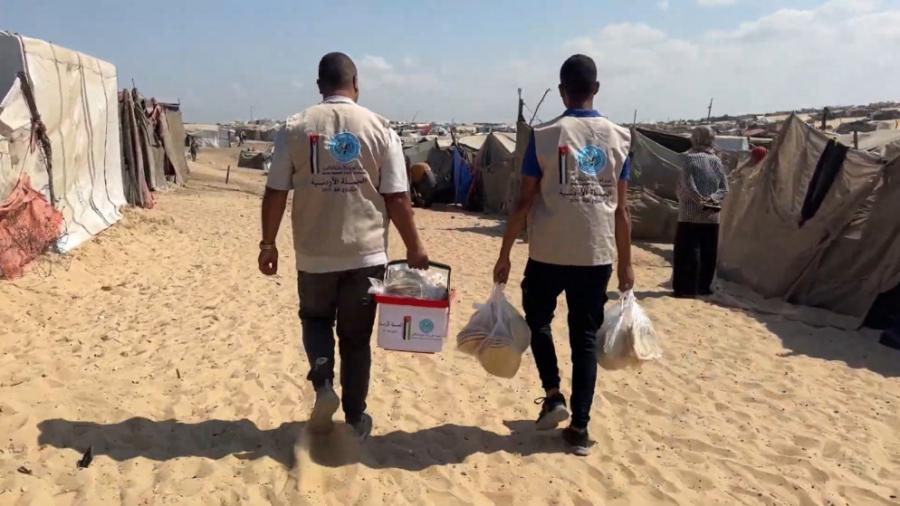 الحملة الأردنية والهيئة الخيرية الهاشمية توزعان الخبز على نازحين في خان يونس