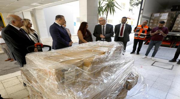 الخيرية الهاشمية تسلم الصحة الفلسطينية شحنة مساعدات طبية هندية
